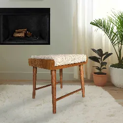 Ashofy Handmade Wooden Seating Stool | Ottoman | Seating Bench | Wooden Stool With Cushion | Cushion Seating Bench For Home, Living Room, Office, Gardan (Size - 18" x 18" x 15.5") Natural Teak Brown Color