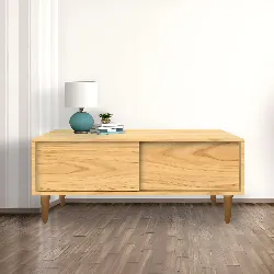 High-End Veneer Console Table with Sliding Door