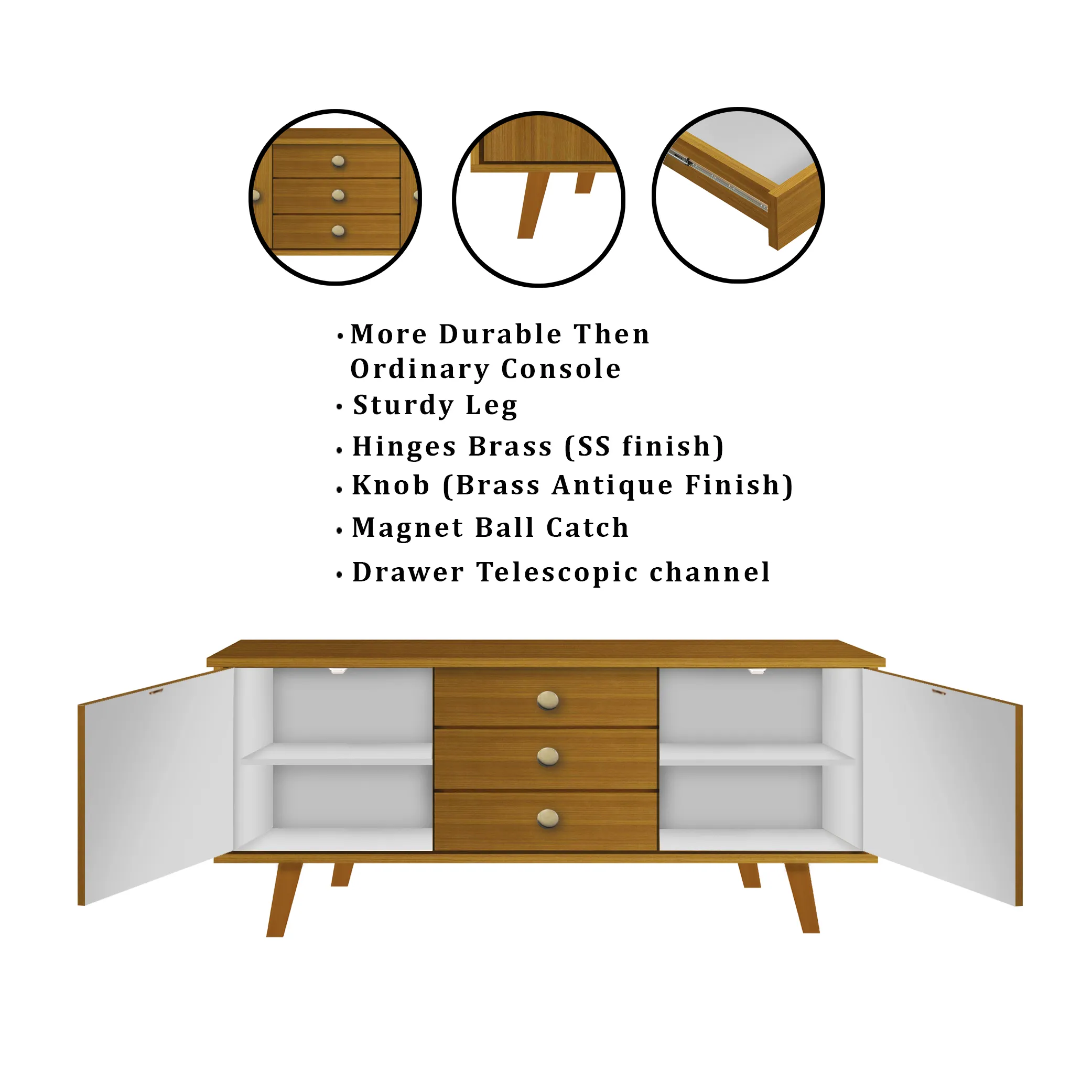 The Veneer Console 2 Shutter & 3 Drawer is a stylish and functional furniture piece that combines the practicality of a console table with the added storage of two shutters and three drawers. The veneer finish adds a touch of elegance and sophistication, while the two shutters provide a sleek and modern look that can be closed to conceal items or opened to reveal the three drawers beneath. These drawers offer ample storage space for organizing and hiding smaller items, making this console table an ideal solution for those who want both style and functionality in their home decor. Overall, this console table is a versatile and practical piece that can serve as a focal point in any room, whether used as a TV stand, entryway table, or simply as a stylish accent piece.