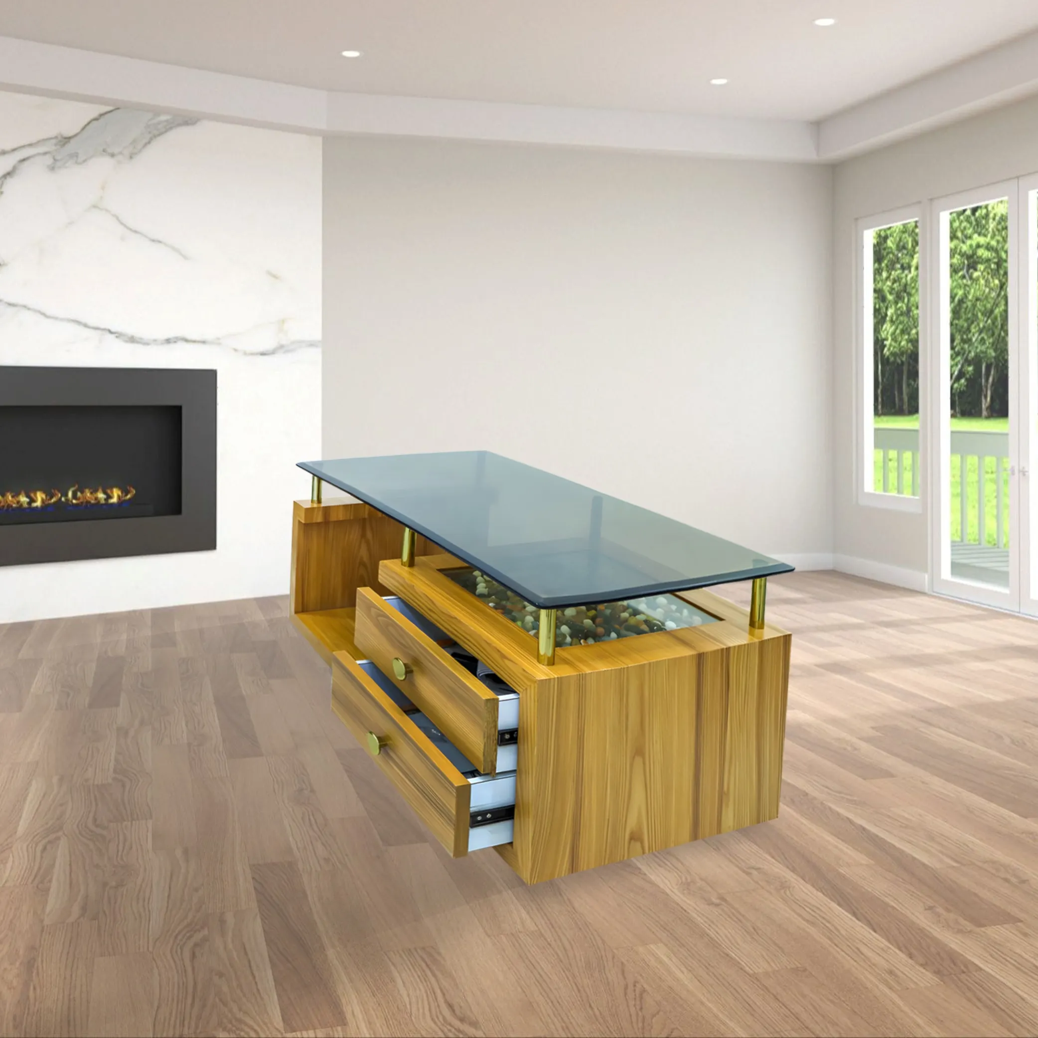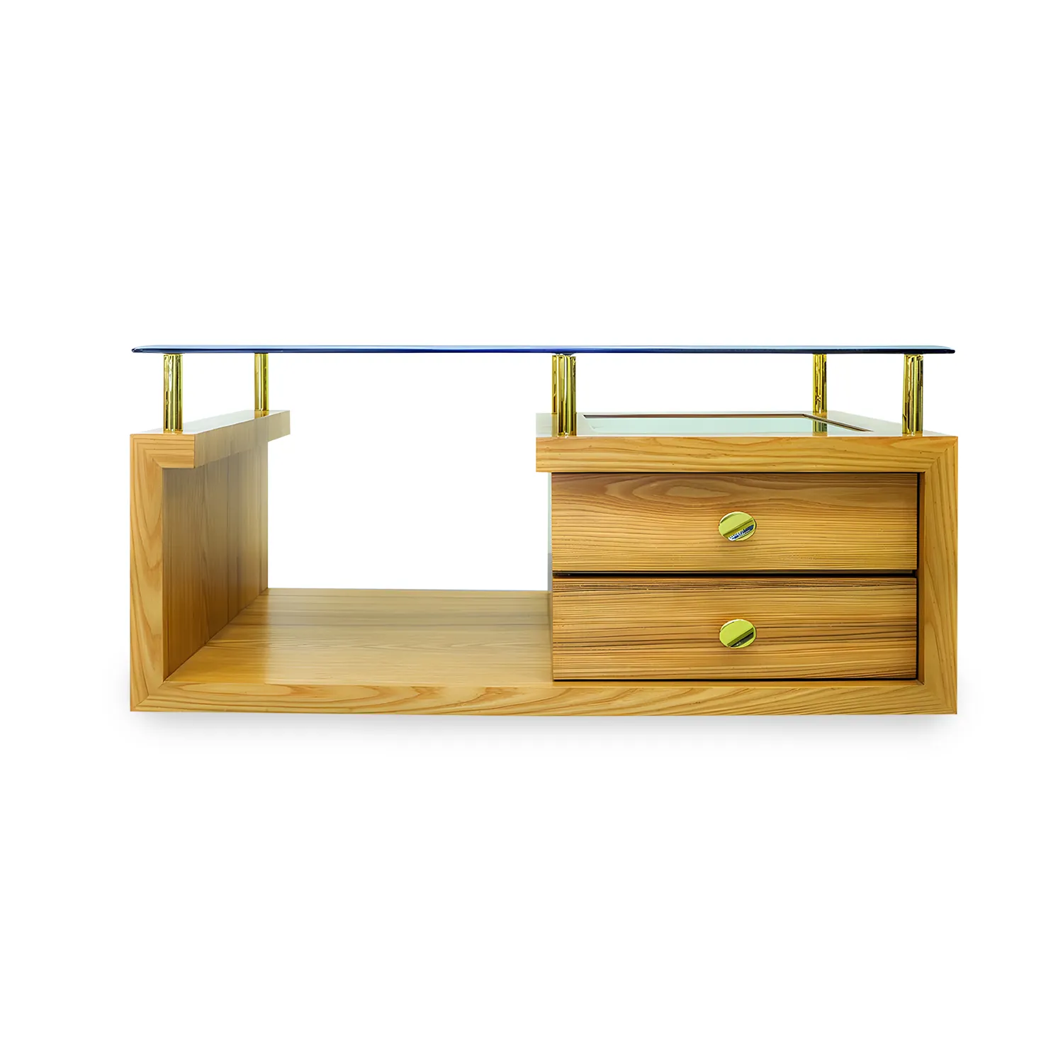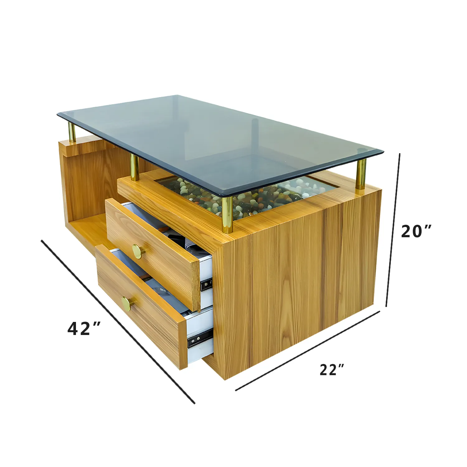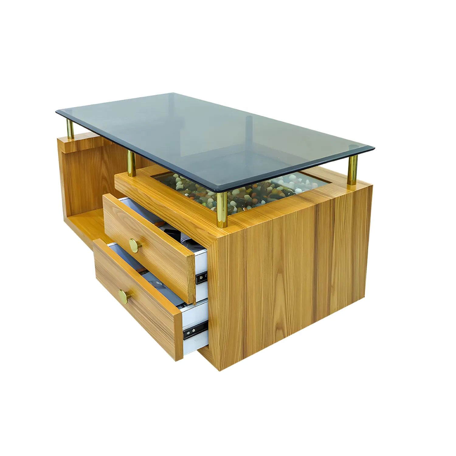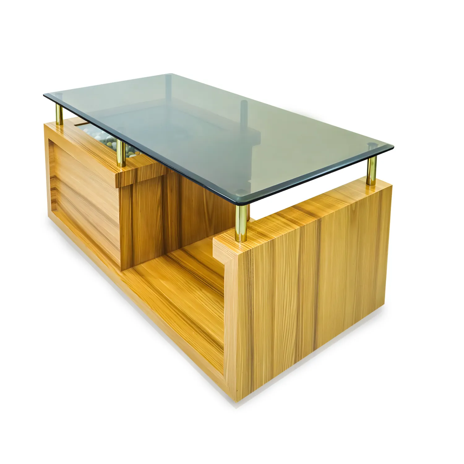 This center table is a stylish and functional furniture piece designed for placement in the center of a room or seating area. It features a flat surface, often supported by wheel, providing a convenient space for placing items like coffee, magazines, or decorative elements. The design is very modern and minimalist catering to different aesthetic preferences.