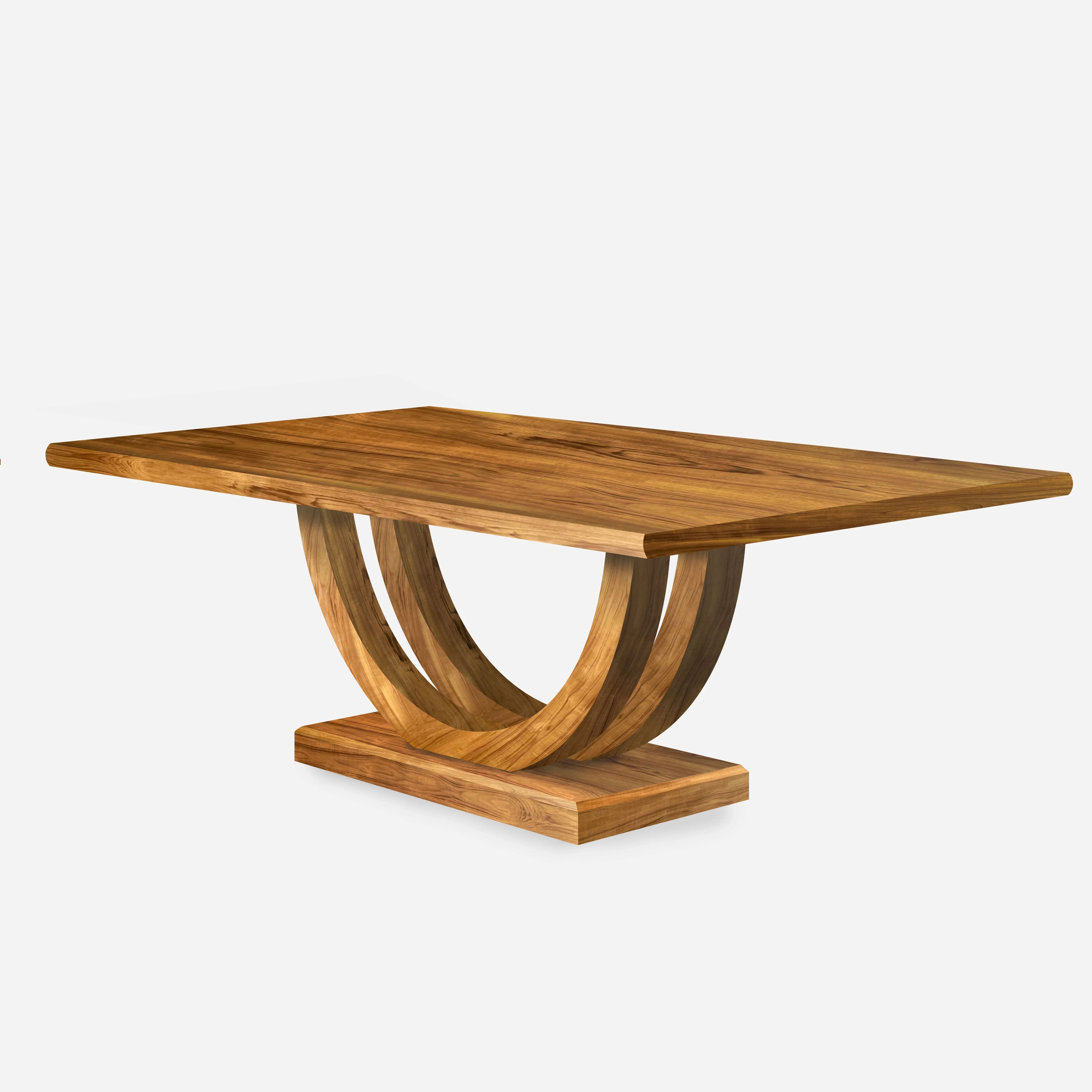 A dining table is a functional and versatile piece of furniture, designed to serve as the central gathering point for families and friends to share meals, create lasting memories, and foster meaningful connections. Typically, it features a sturdy, flat surface, often made of materials like wood and is supported by legs that come in various styles and designs. The table's dimensions are carefully considered to accommodate the desired number of chairs and allow for comfortable dining experiences.