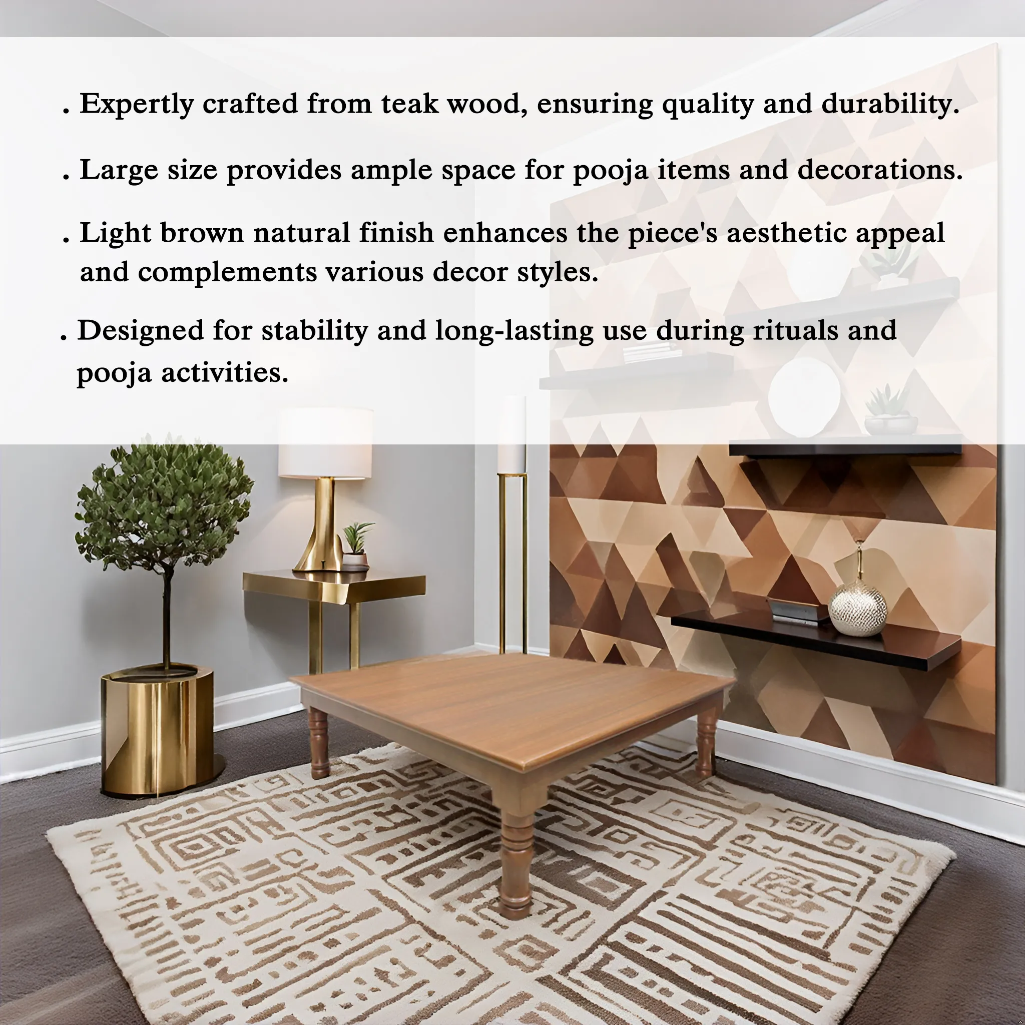 Our wooden pooja chowki is a beautifully crafted piece that is designed to serve as a sacred space for prayer and meditation. our wooden pooja chowki is a beautifully crafted piece that combines traditional design elements with modern functionality. Its sturdy construction, spacious top, and elegant design make it a practical and stylish addition to any prayer space.
