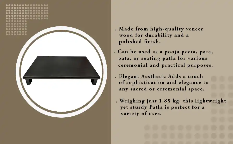 The Wooden Pooja Patla is a beautifully handcrafted, traditional piece designed to create a sacred space for your daily prayers and rituals. Made from high-quality, sustainable wood, this exquisite piece showcases intricate carvings and finishes that reflect the rich cultural heritage of our ancestors.