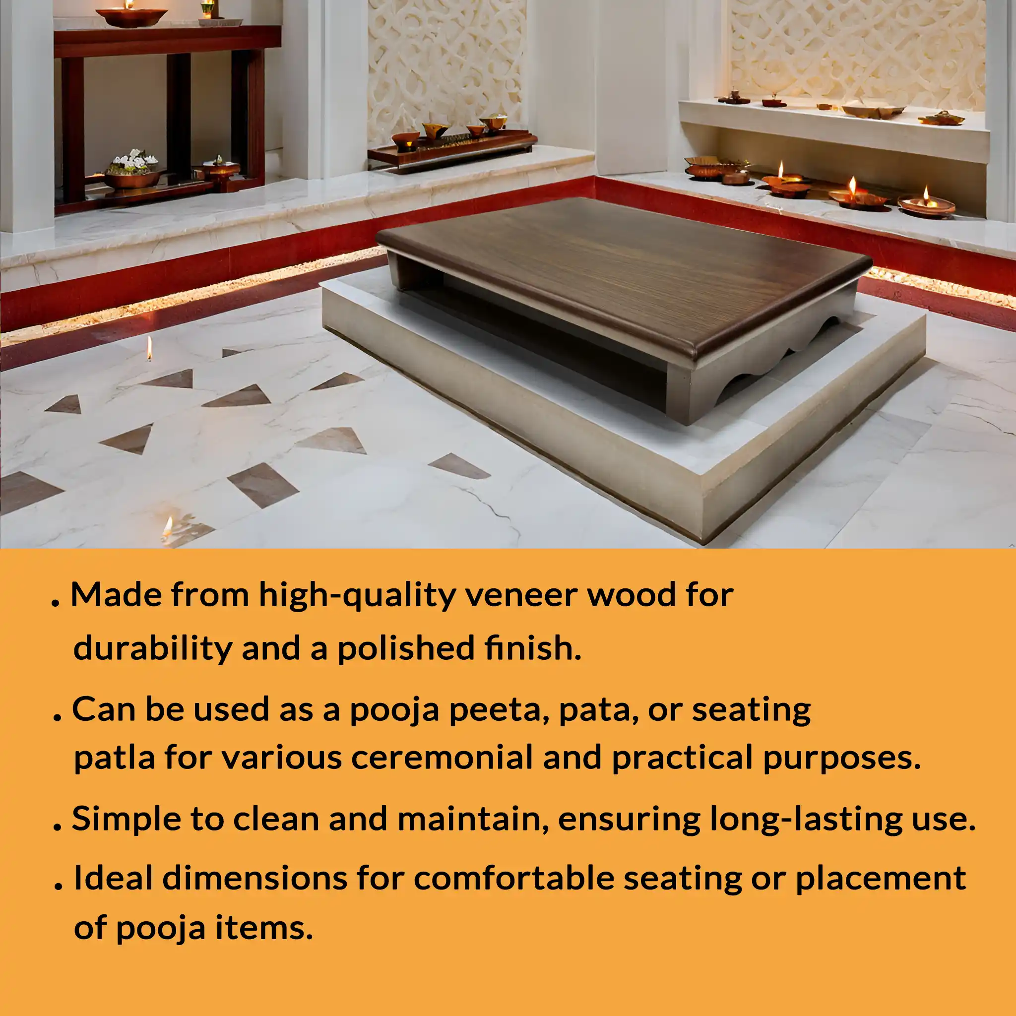 Ashofy Handmade Veneer Wooden Pooja Patla | Pooja Peeta | Seating Patla | Mandir Stool for Pooja Idol | Pooja Aasan, Pooja Patla for Festival & Multipurpose Use Medium Size (16x2.5x11) Inch