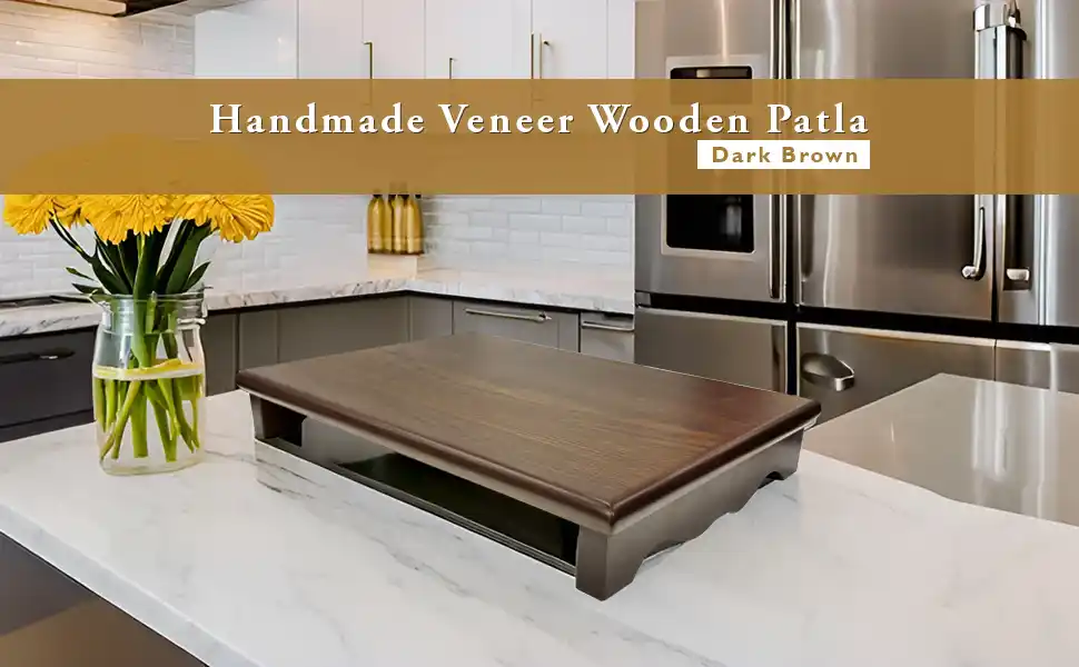 Ashofy Handmade Veneer Wooden Pooja Patla | Pooja Peeta | Seating Patla | Mandir Stool for Pooja Idol | Pooja Aasan, Pooja Patla for Festival & Multipurpose Use Medium Size (16x2.5x11) Inch