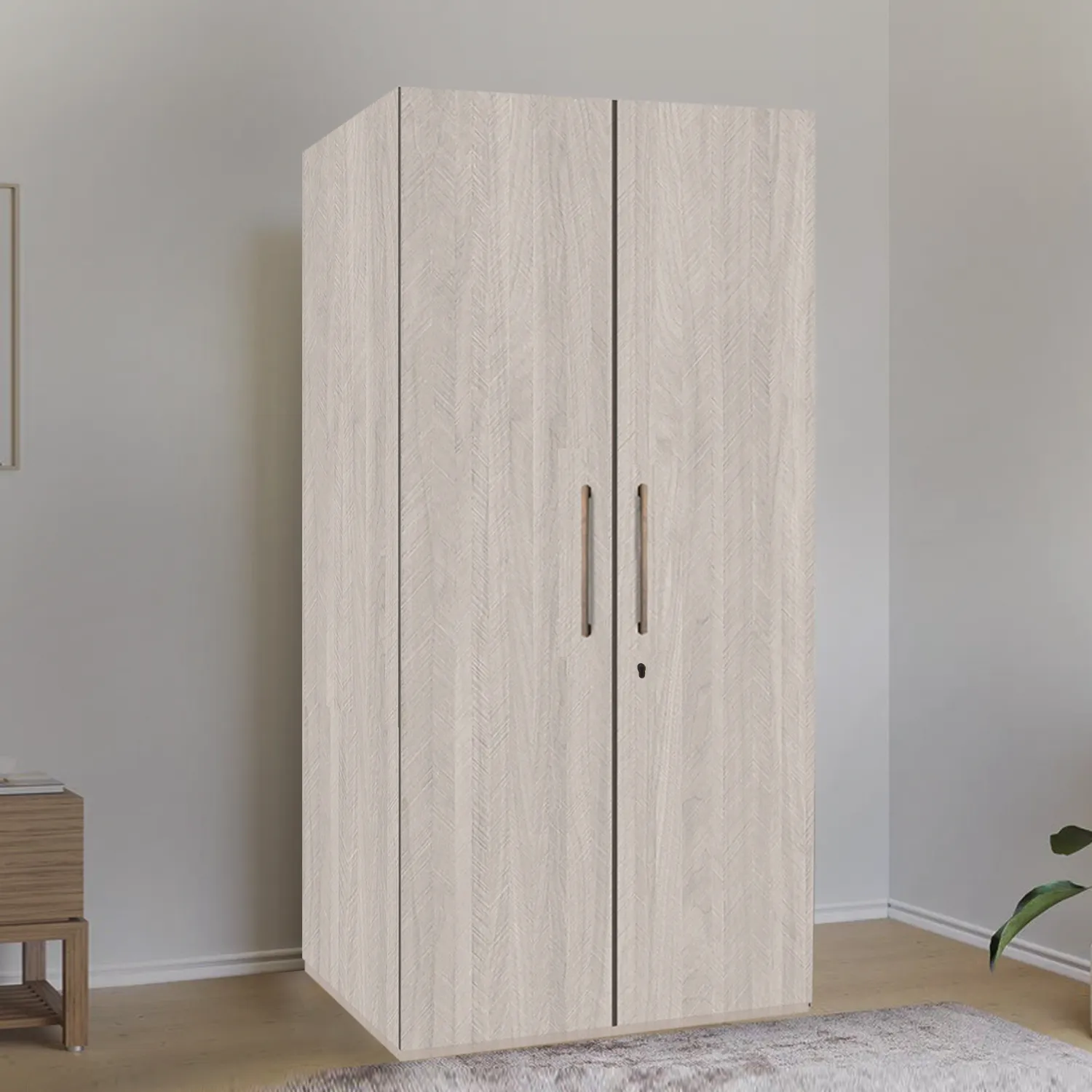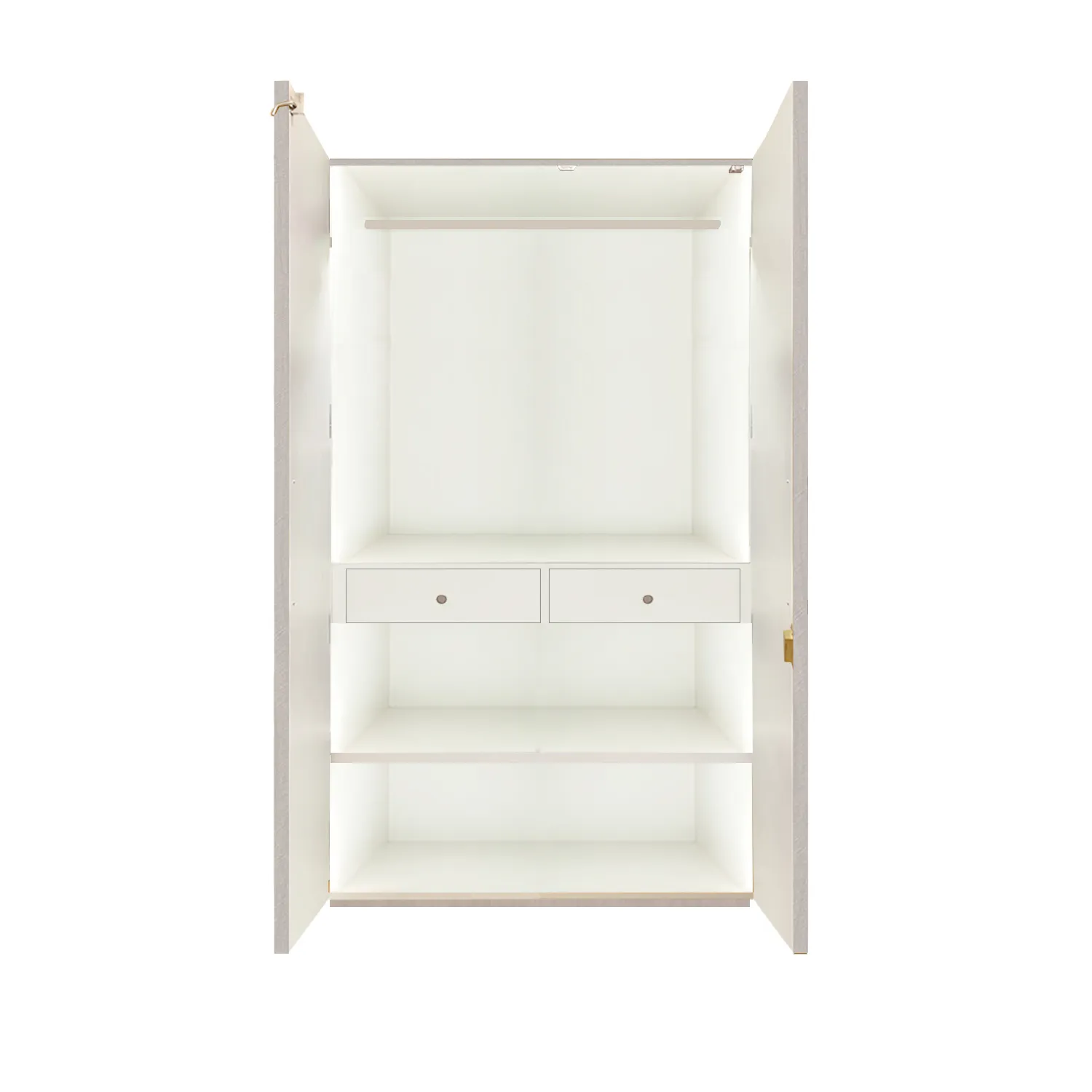 The doors have a simple panel design and are painted white. The wardrobe has three shelves inside, which are adjustable so that you can customize the storage space to fit your needs. The wardrobe also has a hanging rail at the top, which is perfect for hanging clothes. The wardrobe is a good size and has plenty of storage space. It is also very versatile and can be used in a variety of rooms, such as the bedroom, hallway, or even the living room. The white finish is neutral and will match any décor.