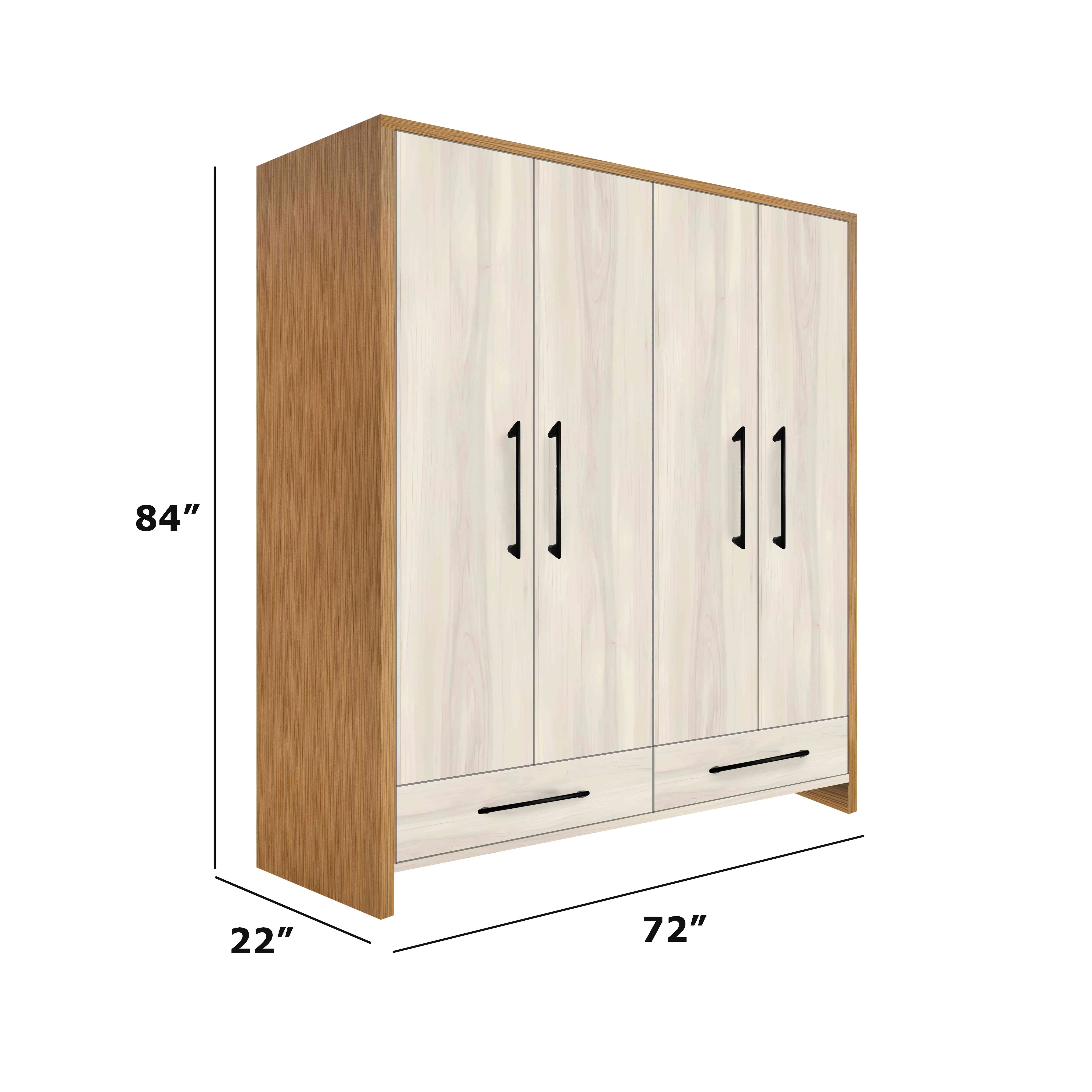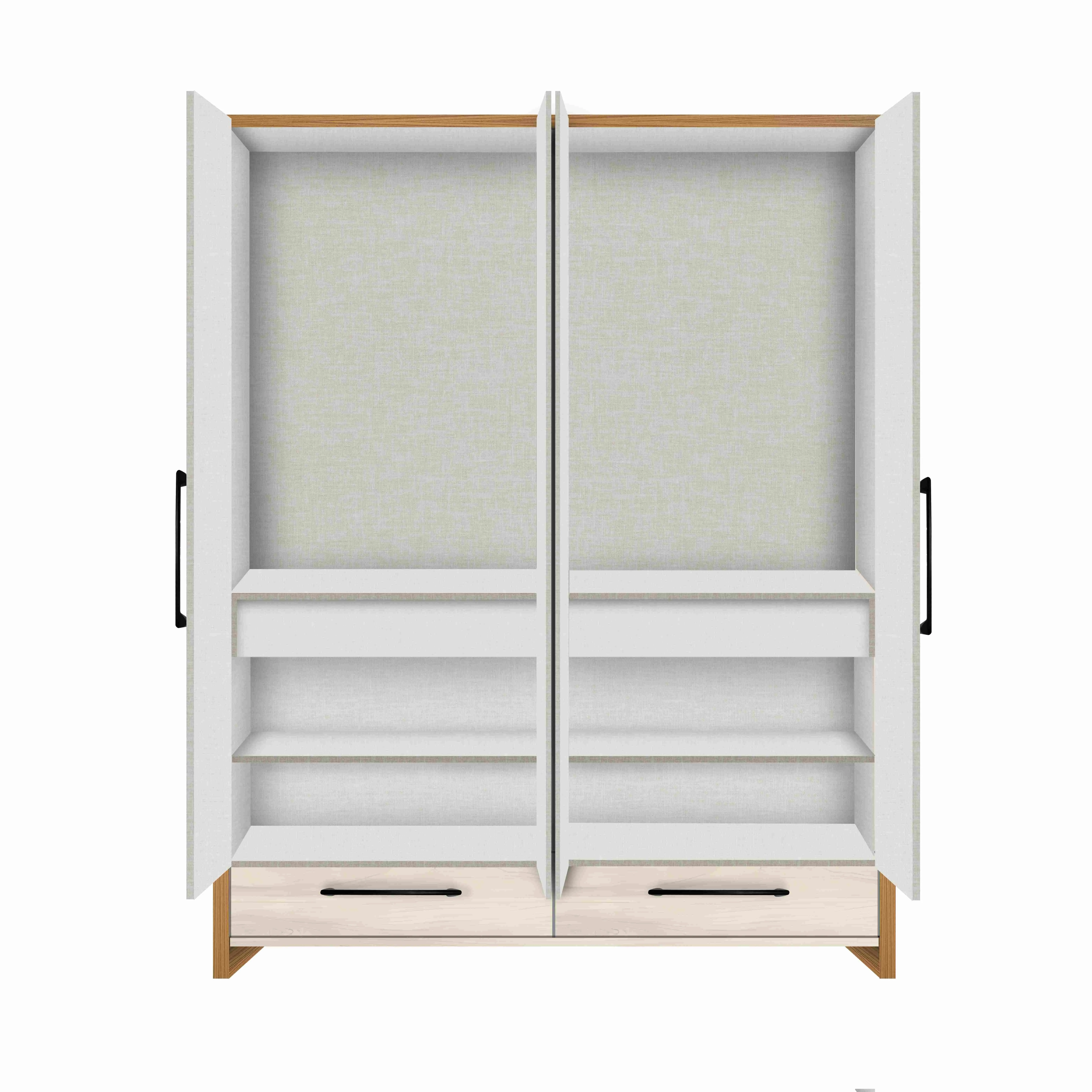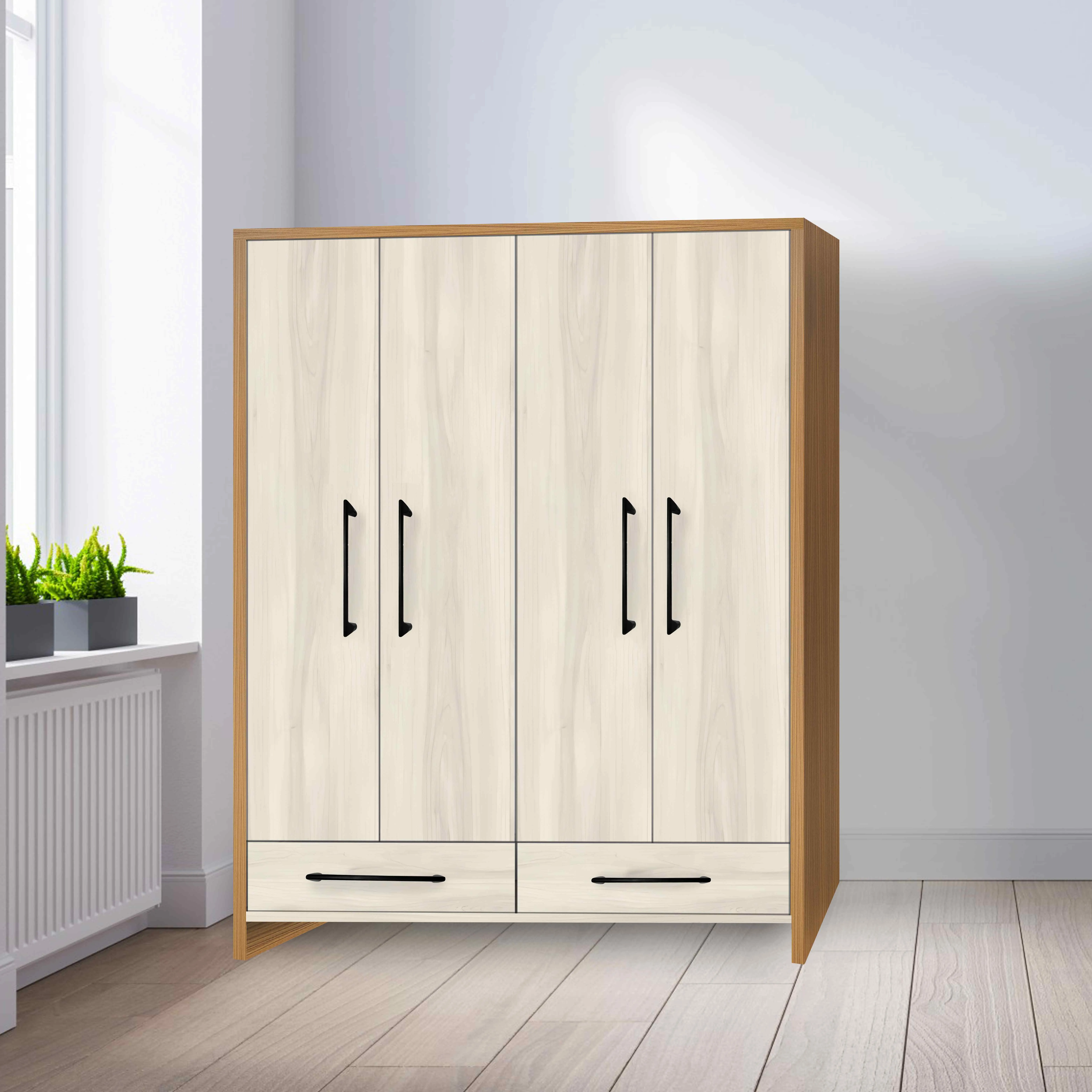 Introducing our stunning 4-door wardrobe, the ultimate storage solution for any bedroom. Crafted with premium materials and expert craftsmanship, this wardrobe is both functional and aesthetically pleasing. The four doors are made of high-quality wood. Each door is fitted with soft-close hinges, ensuring a quiet and smooth operation every time. The interior of the wardrobe is equally impressive, featuring adjustable shelves and hanging rods to accommodate a variety of clothing items. Overall, our 4-door wardrobe is the perfect combination of functionality, style, and durability. Whether you're looking to maximize your storage space or simply want a stylish addition to your bedroom, this wardrobe is the perfect choice. Invest in our wardrobe today and enjoy the benefits of superior quality and design for years to come.